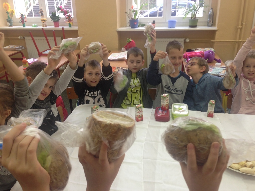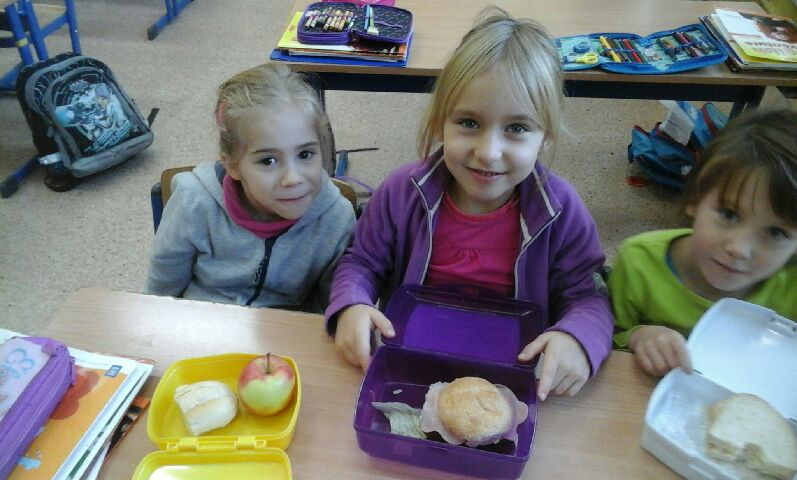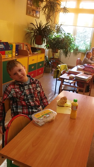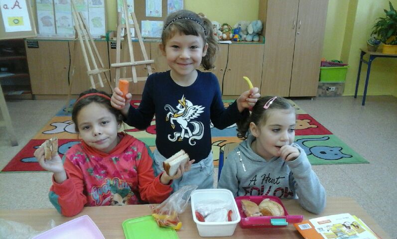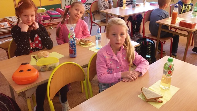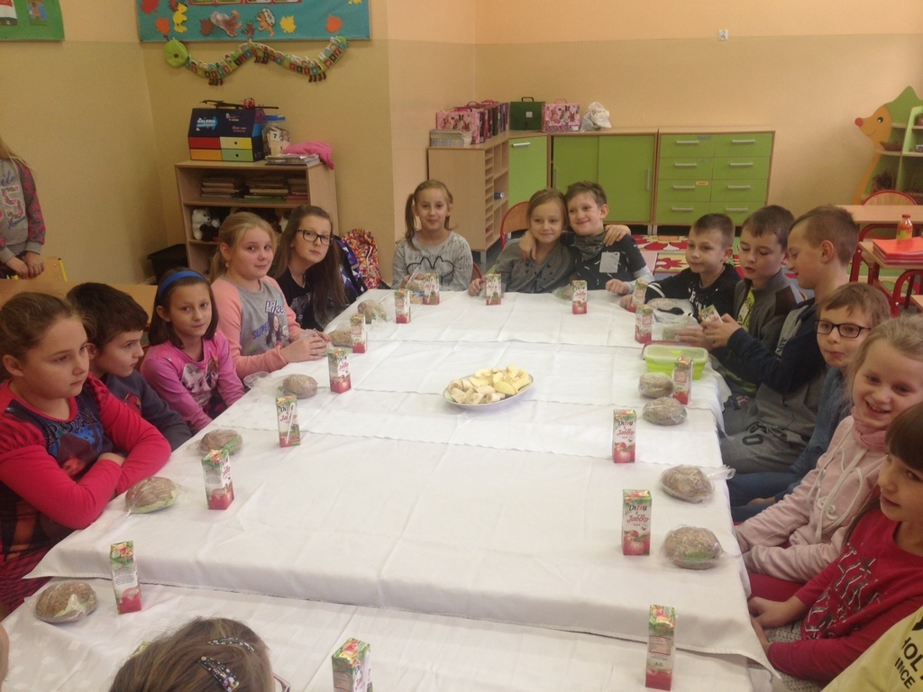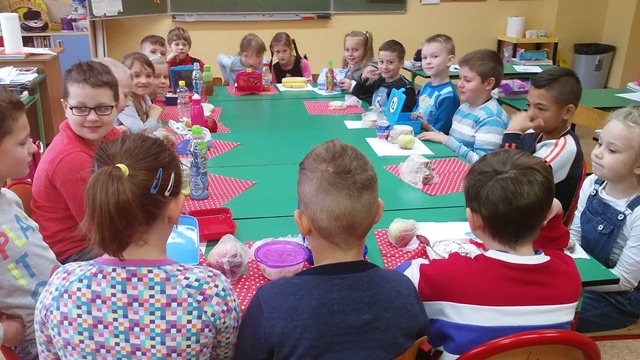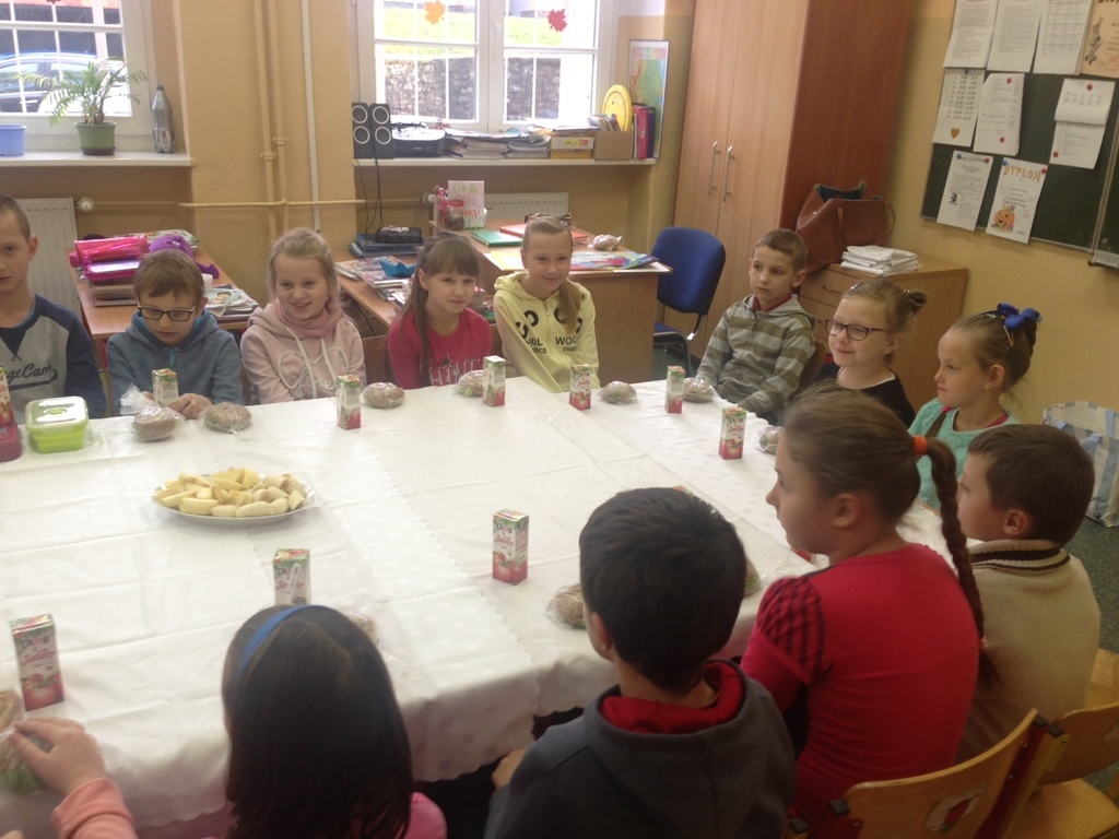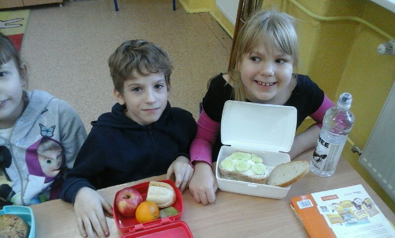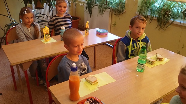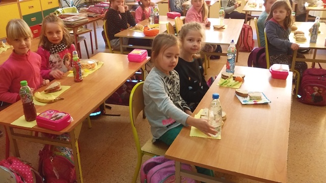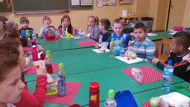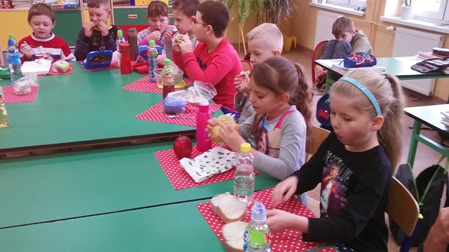 Kolejny już raz uczniowie klas młodszych uczestniczyli w akcji "Śniadanie daje moc". Pod okiem nauczycieli przypominali sobie zasady zdrowego odżywiania, poznali nową piramidę zdrowia, prezentowali przyniesione śniadania, omawiali, co w nich jest zdrowe i dlaczego. Pamiętali także o tym, że należy uprawiać sport, bo ruchu zażywamy bez ograniczeń. Podczas cichego czytania ze zrozumieniem poznali przepis na zdrowy koktajl. Mamy nadzieję, że zdrowe śniadania będą gościły w menu naszych uczniów nie tylko raz w roku!