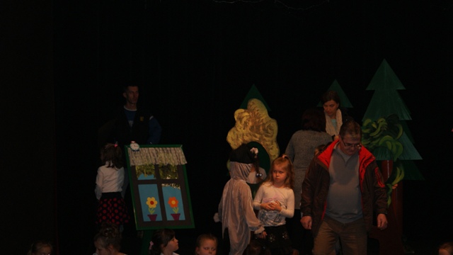 Na przedstawienie dzieci zaprosiły p. Dyrektor oraz swoich rodziców, babcie, ciocie. Widzom bardzo podobała się sztuka, dzieci dobrze się bawiły, były zadowolone ze swojego występu, a na koniec z widowni popłynęły gromkie brawa.
