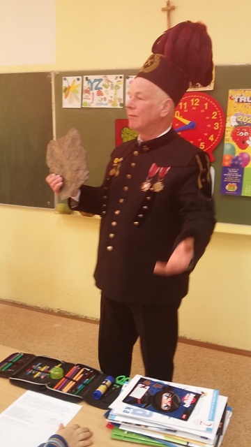 Z okazji święta szkoły uczniowie klasy II a i II b przygotowali krótki rys dotyczący historii powstania węgla kamiennego, a zaproszonym górnikom i swoim koleżankom i kolegom zaprezentowali bajkę pt. "Jaś i Małgosia". Potem w swoich klasach uczniowie wszystkich klas rozmawiali z górnikami o pracy pod ziemią i symbolach górniczych. Mamy nadzieję, że wzbogacili swoją wiedzę oraz miło spędzili ten świąteczny dzień.