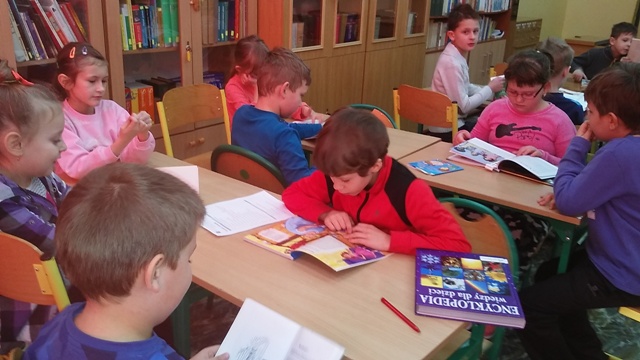 W związku ze zbliżającą się przerwą świąteczną uczniowie klasy II b wybrali się z wizytą do szkolnej biblioteki. Tam pani bibliotekarka zaprezentowała im ciekawe propozycje książkowe, które mogą umilić czas. Były to lektury dla klasy drugiej. Uczniowie oprócz przeglądnięcia książek, mogli także zapoznać się z e-bookami. Otwierali strony internetowe oraz słuchali fragmentów lektur. Okazało się także, że najlepszą czytelniczką w klasie jest Wiktoria Czoszyk - gratulujemy! Zachęcamy wszystkich uczniów do czytania książek, bo to najlepszy sposób na przeniesienie się w inne wymiary i strony świata.