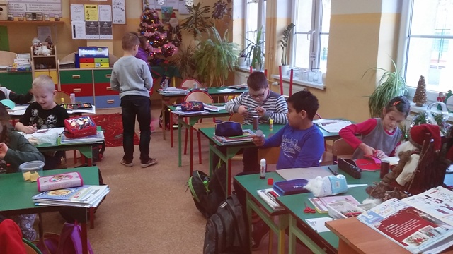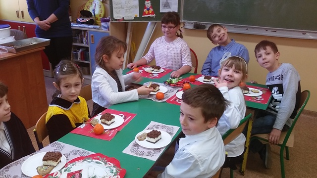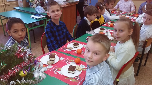 WPRAWDZIE CZAS ŚWIĄT BOŻEGO NARODZENIA MAMY JUŻ ZA SOBĄ, ALE MY CHCEMY JESZCZE TROCHĘ JE WSPOMNIEĆ. A BYŁO TAK: NAJPIERW UCZYLIŚMY SIĘ JAK NALEŻY NAKRYWAĆ DO STOŁU I ZASAD KULTURALNEGO ZACHOWANIA SIĘ PRZY NIM, ABY POMÓC W NAKRYWANIU DO WIECZERZY WIGILIJNEJ I NIE PRZYNIEŚĆ RODZICOM WSTYDU PODCZAS WSPÓLNEGO ŚWIĘTOWANIA. POTEM PRZYGOTOWYWALIŚMY ŚWIĄTECZNE DEKORACJE ( W TYM ROKU BYŁY TO RENIFERY), A NASTĘPNIE RAZEM Z NASZĄ PANIĄ I MAMAMI NAKRYWALIŚMY DO KLASOWEJ WIGILII, DZIELILIŚMY SIĘ OPŁATKIEM, ŚPIEWALIŚMY KOLĘDY, WYCIĄGALIŚMY ŹDŹBŁA SIANKA, ŻEBY ZOBACZYĆ, KTO BĘDZIE MIAŁ WIĘCEJ SZCZĘŚCIA W NOWYM ROKU, ZGADYWALIŚMY ILE NASION FASOLI JEST W SŁOIKU.KAŻDY Z NAS DOSTAŁ CZEKOLADOWEGO MIKOŁAJA, ALE NALEŻAŁO NA NIEGO ZASŁUŻYĆ, NP. PODAĆ WŁAŚCIWE ROZWIĄZANIE ŚWIĄTECZNEJ ZAGADKI. TERAZ NATOMIAST MYŚLIMY JUŻ O ŚWIĘCIE BABĆ I DZIADKÓW, BO TO JEDNE Z NAJWAŻNIEJSZYCH OSÓB W NASZYM ŻYCIU.