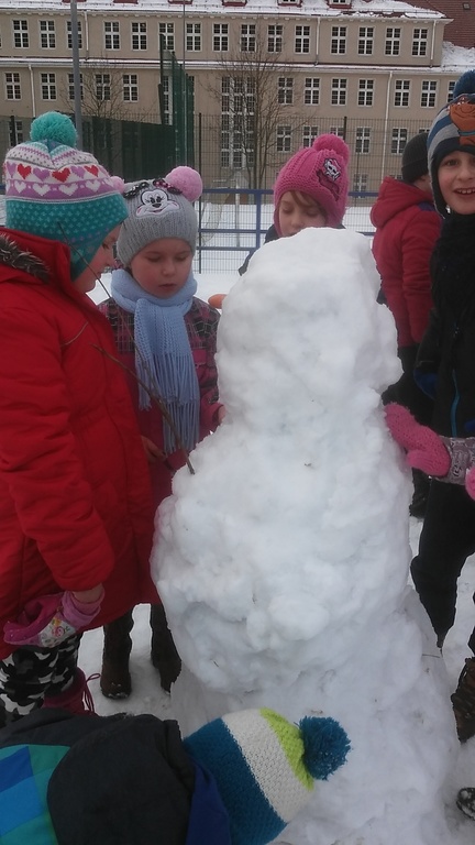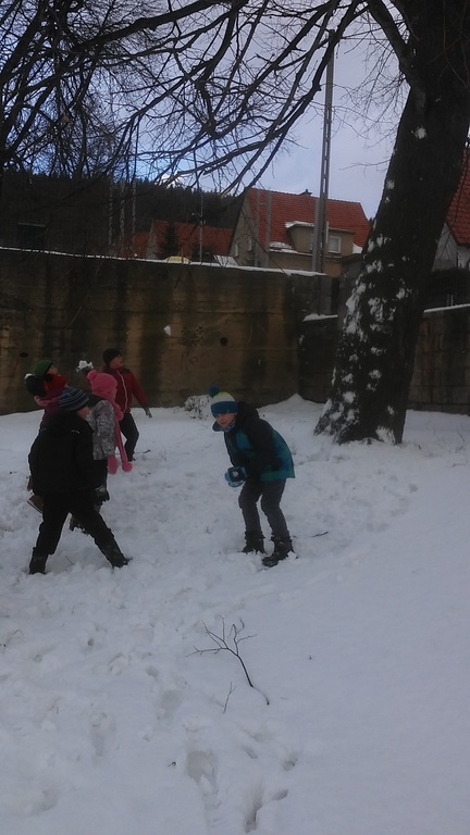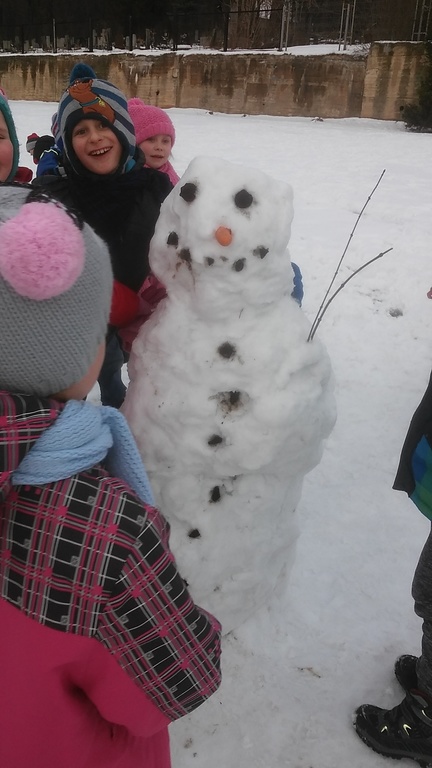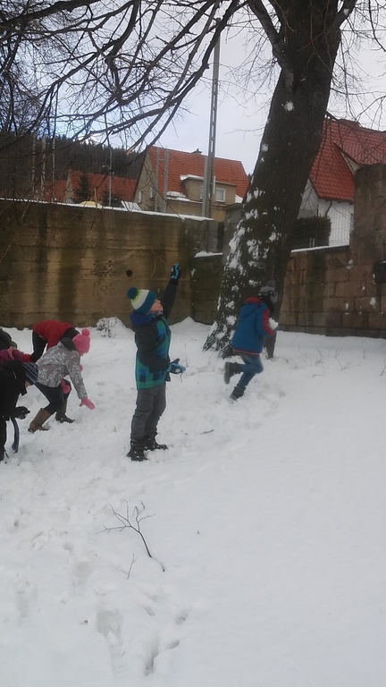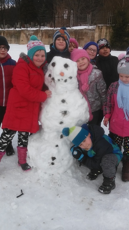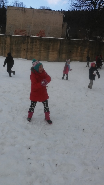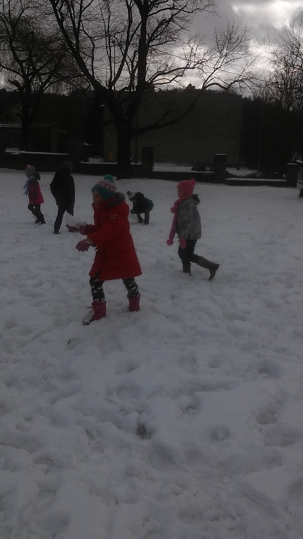 Nie wiemy, czy aura zimowa utrzyma się do ferii, dlatego korzystamy z uroków zimy. Nie ma to jak bezpieczna zabawa w rzuty do celu stałego, czy ruchomego oraz lepienie bałwana. Pamiętajmy o bezpieczeństwie podczas zabaw. Kulki nie mogą być za twarde, rzucamy nimi w rówieśników tylko za ich zgodą, nie celujemy w głowę, ale w plecy lub nogi.