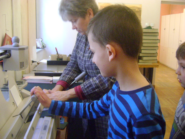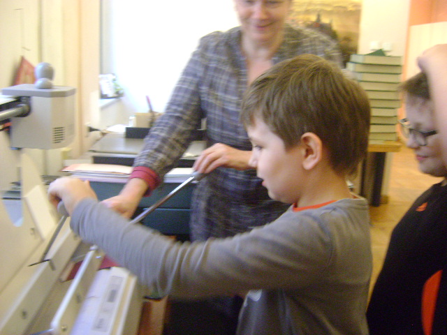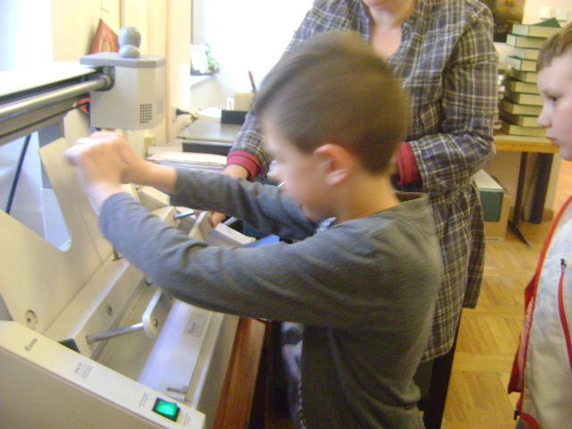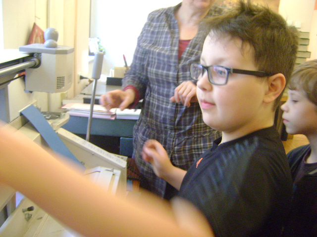 W czasie trwania Tygodnia Bibliotek uczniowie klasy II b wybrali się z kolejną wizytą do biblioteki „Pod Atlantami”. Uczestniczyli w warsztatach z zakresu introligatorstwa. Dokładnie poznali zasady pracy zgromadzonych tam urządzeń, bezpiecznie korzystali z gilotyny do cięcia papieru oraz pod fachowym okiem pani introligatorki zwanej też „lekarzem książek”, wykonywali notesiki, które otrzymali na własność. Następnie w galerii biblioteki podziwialiśmy obrazy wykonane na płytach winylowych prze panią Małgorzatę Karczewską, która w ten sposób chce wyrazić hołd wybitnym muzykom. Korzystając z pięknej pogody, po wizycie w bibliotece, w ramach edukacji regionalnej, wybraliśmy się pod Pomnik Niepodległości gdzie poszerzyliśmy nieco swoją wiedzę związaną z historią Polski oraz odwiedziliśmy kościółek Matki Boskiej Bolesnej i poznaliśmy legendę związaną z tym miejscem. W drodze powrotnej podziwialiśmy fontannę znajdującą się w centrum wałbrzyskiego Rynku. Pełni wrażeń, nowych wiadomości i umiejętności wróciliśmy do szkoły.