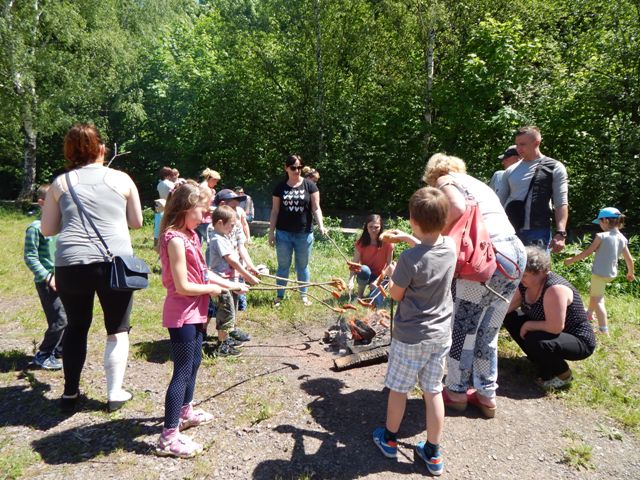 Wspaniała zabawa, piękna pogoda, uśmiechnięte twarze dzieci oraz rodziców to obrazki ze spotkania rodzinnego przy ognisku, które odbyło się w piątek, 2 czerwca br. w godzinach popołudniowych. Tego dnia, już od rana , dzieci z oddziału przedszkolnego, były bardzo podekscytowane i nie mogły doczekać się końca zajęć, kiedy to wspólnie z rodzicami będą obchodziły swoje święto. Bardzo pomocny okazał się pan radny Anatol Szpur, przygotował i rozpalił ognisko, przy którym dzieci wraz z rodzicami piekły kiełbaski i ziemniaki. Zaproszenie na rodzinny piknik przyjęła także pani dyrektor Mariola Rząsowska.