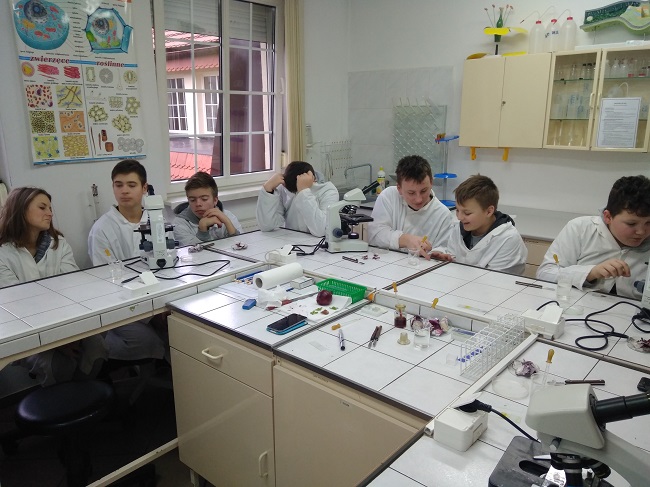 preparowali tkanki z łusek cebuli i begonii oraz obserwowali je pod mikroskopem.
