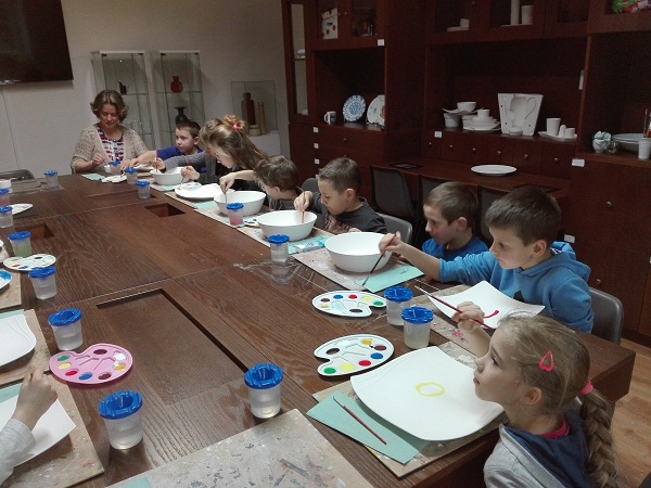 wzięli udział w warsztatach plastycznych „Malujemy na porcelanie”. Każdy z uczniów otrzymał na