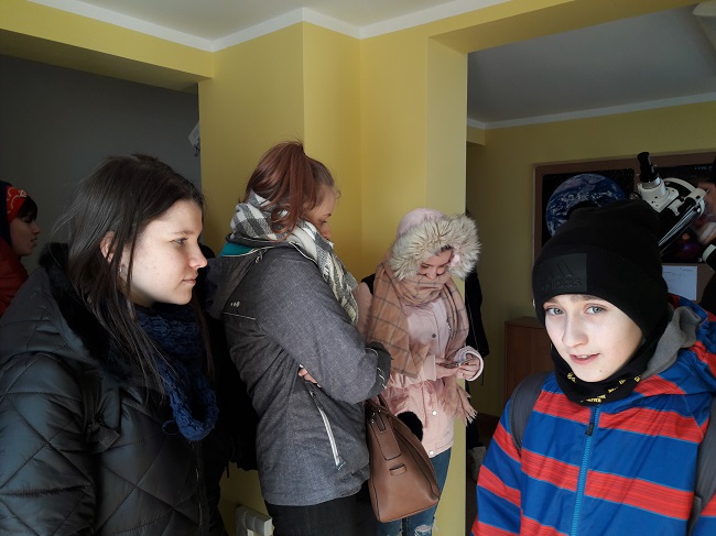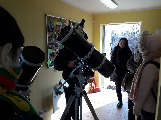 Dnia 22 lutego klasa VIIb wzięła udział w lekcji fizyki (z działu astronomii). Zajęcia odbyły się w Liceum Sióstr Niepokalanek . Uczniowie mieli okazję dowiedzieć się dlaczego zimą jest zimno, a latem ciepło?, mogli na modelu ziemi obliczyć długości dnia na półkuli północnej w czasie zimy i lata. Na koniec wizyty w małym obserwatorium oglądali teleskop i rzut słońca na rzutniku (Ze względu na porę dnia-dzień, nie mogli oglądać nieba gdyż siła skupienia na soczewce mogłaby w krótkim czasie trwale uszkodzić wzrok. Na obserwacje nieboskłonu można telefonicznie umówić się z siostrami w porze wieczornej). Wizyta była ciekawym doświadczeniem.