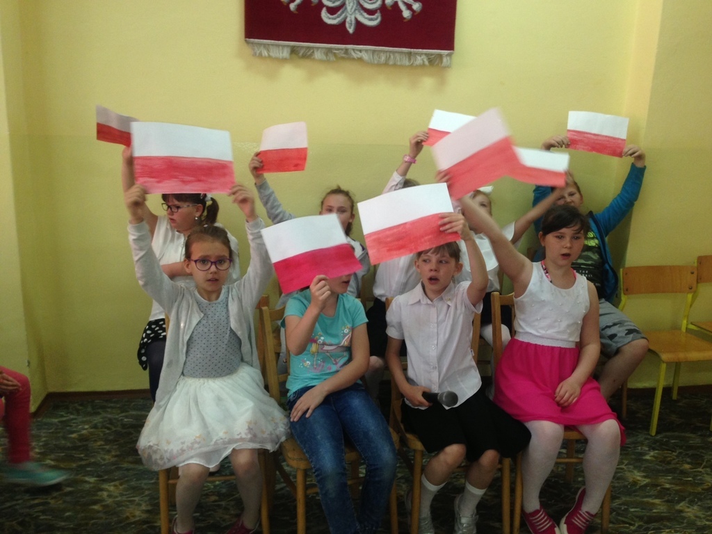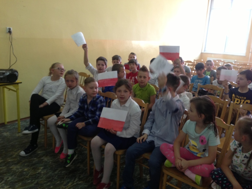 30 kwietnia uczniowie klas III przypomnieli swoim rówieśnikom o majowych świętach. Przy pomocy wierszy, tekstu "Mazurka 3 Maja", prezentacji multimedialnej przybliżyli tę tematykę. Uczniowie wspólnie powiedzieli wiersz "Kto Ty jesteś" oraz zaśpiewali cztery zwrotki Hymnu Państwowego.