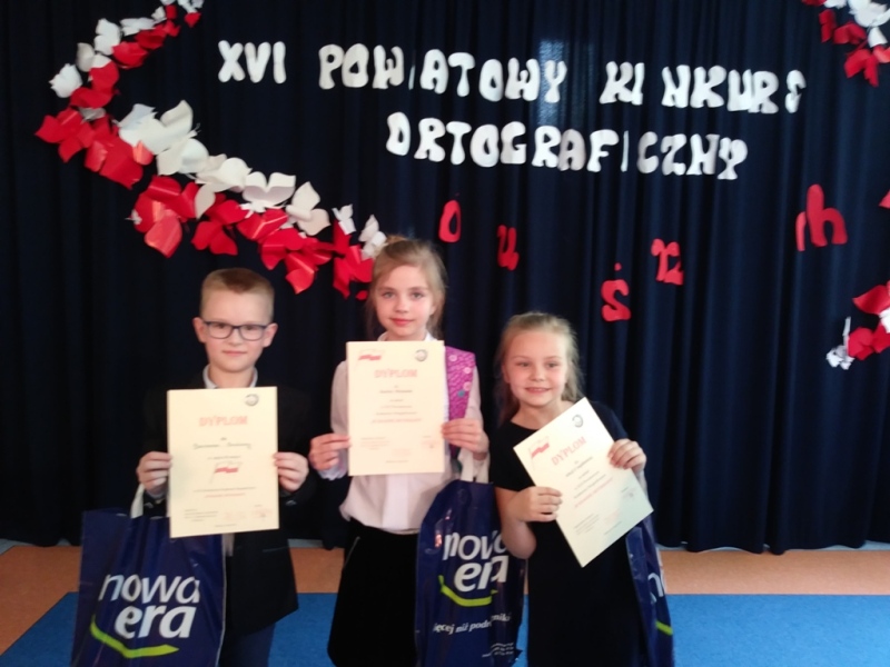 Uczniowie klas III uczestniczyli w XVI Powiatowym Konkursie Ortograficznym. Wzięło w nim udział 21 uczniów z powiatu wałbrzyskiego. Naszą szkołę godnie reprezentowali: Karina Michalak, Alicja Czaplińska i Bartosz Sulima, który zajął III miejsce. Serdecznie gratulujemy!