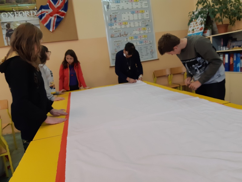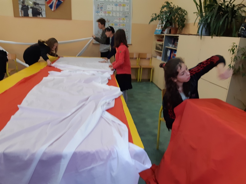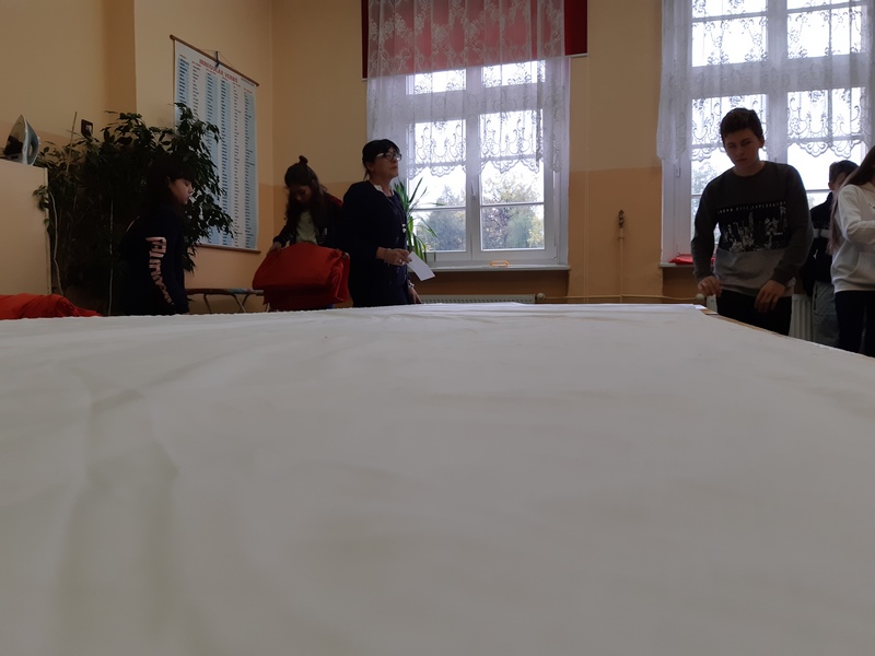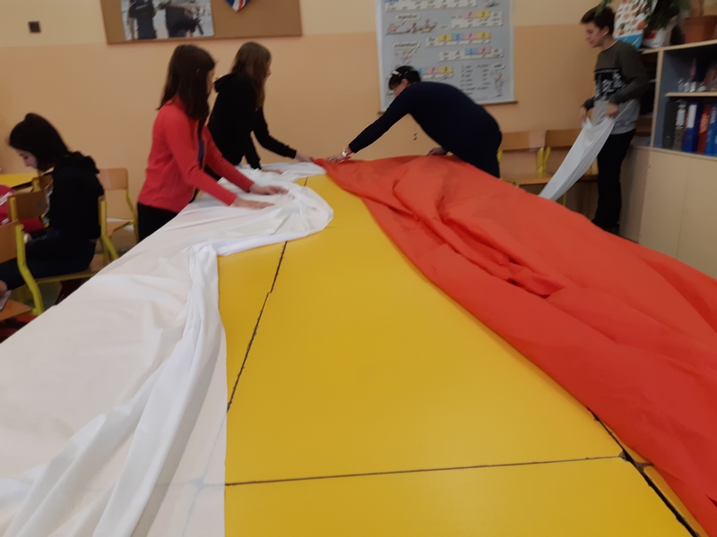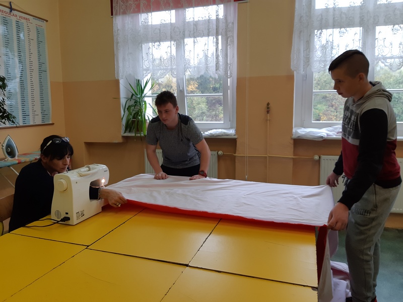 Uczniowie oraz nauczyciele ZSP nr 4 postanowili uszyć Flagę Narodową i zamieścić ją na budynku szkoły z okazji 100 rocznicy Odzyskania Niepodległości