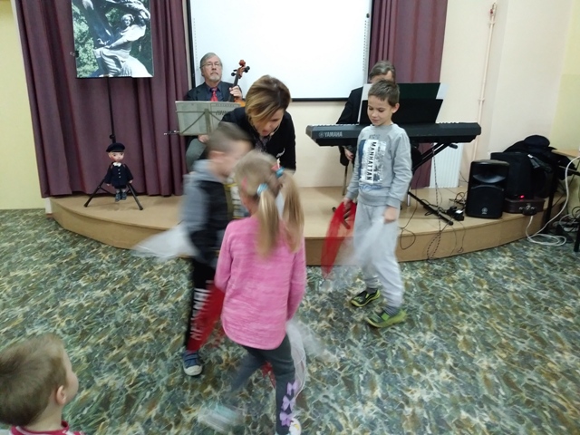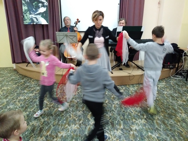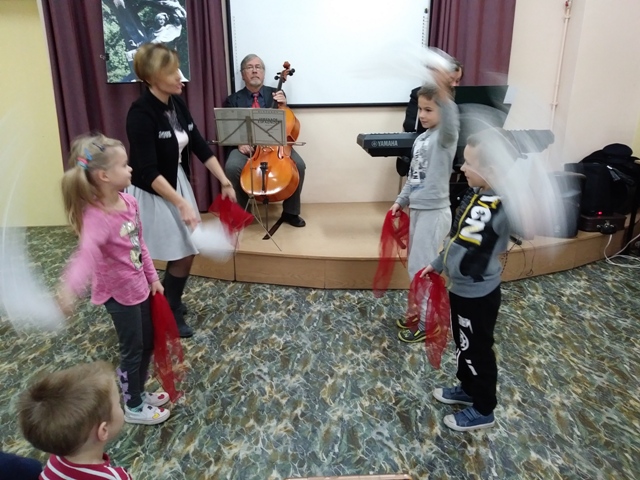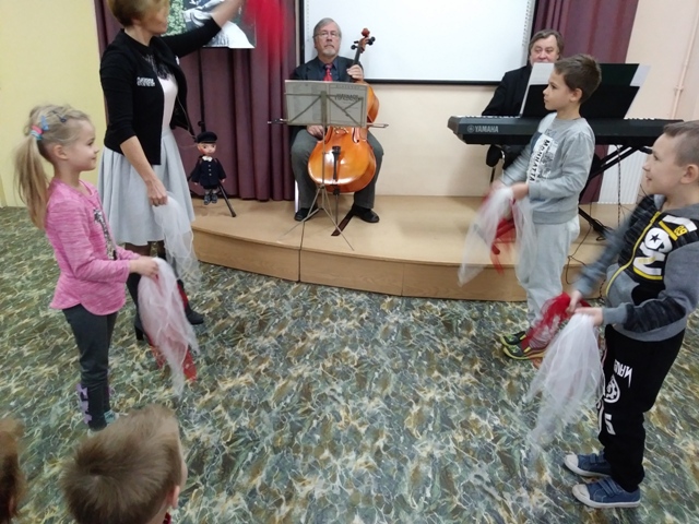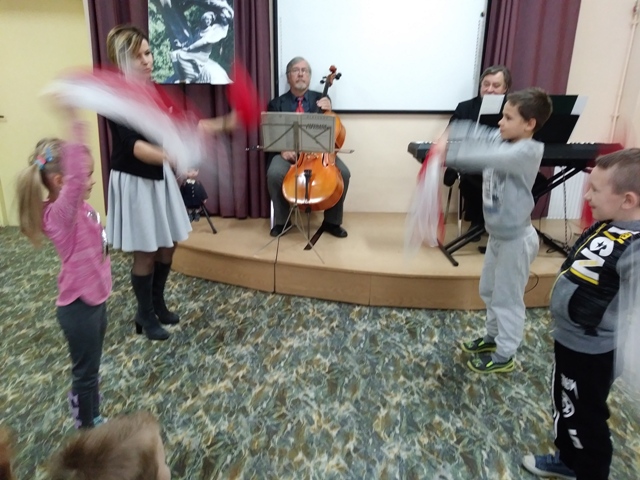 Tym razem uczestniczyliśmy w spotkaniu pt "Chopin oczami dzieci". Mogliśmy dowiedzieć się: jaki był mały Frycek,o czym marzył, gdzie spędzał dzieciństwo, dlaczego niemal w całej jego twórczości odnajdujemy ludowe motywy. Poznaliśmy także bliżej kolejny instrument muzyczny, jakim jest kontrabas. Całemu spotkaniu towarzyszyły pierwsze kompozycje Fryderyka Chopina. Uczestniczyliśmy także w tańcu biało-czerwonym przygotowanym specjalnie na tę okoliczność.