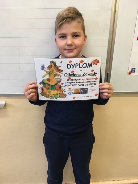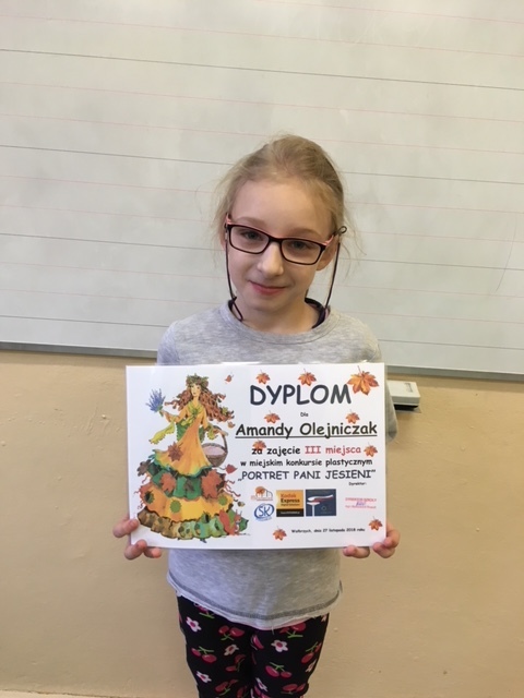 Amanda Olejniczak zajęła III miejsce w miejskim konkursie plastycznym pn.”Portret Pani Jesieni". W tym samym konkursie wyróżnienie otrzymał Oliwier Zawada.