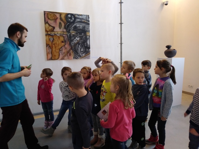 Uczniowie klasy I a uczestniczyli w warsztatach poznawczych "Szklany czas - wędrówki krajobrazem". W sposób fachowy i dostępny opiekun wystawy wprowadził dzieci w tajniki powstawania witrażów, linorytu, sitodruku, czy kalkomanii. Mieliśmy okazję podziwiać prace wałbrzyskiej młodzieży, która jest autorką tych prac. Mogliśmy także poznać instrumenty muzyczne z Australii i Afryki oraz oglądnęliśmy obrazy związane z górnictwem. Uczniowie uczyli się fachowo spoglądać na sztukę. Niezwykłe wrażenie zrobiła na nas również Stara Kopalnia, która szczególnie nas - małych gwarków zainteresowała.