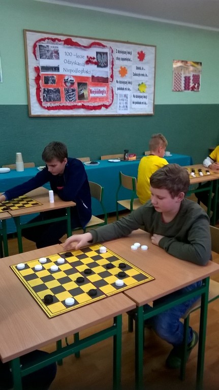 Dn.11 grudnia uczniowie naszej szkoły wzięli udział w II Międzyszkolnym Turnieju Warcabowym, który odbył się w PSP nr23. W kategorii klas młodszych III miejsce zajął Gabriel Przybylski z kl.4b ,natomiast w kategorii klas starszych Rafał Krysik z kl.8a uplasował się na II miejscu. Gratulujemy !