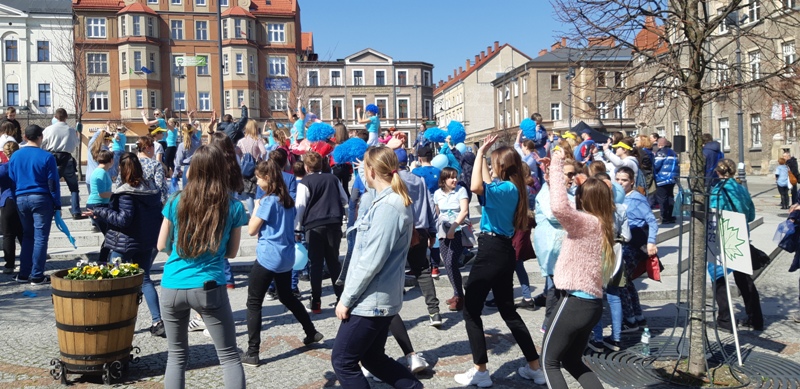 Dnia 02.04.2019r. uczestniczyliśmy w wałbrzyskich obchodach Światowego Dnia Świadomości Autyzmu. Na Placu Magistrackim zatańczyliśmy "Zumbę na niebiesko" solidaryzując się z osobami z autyzmem.