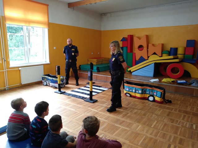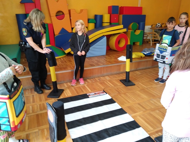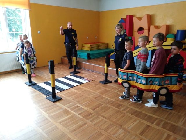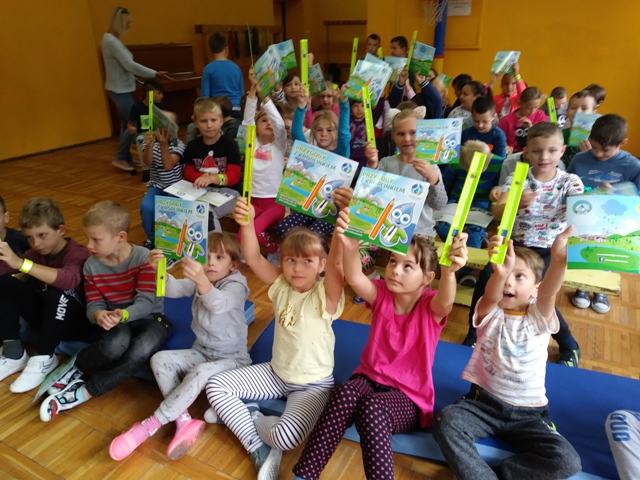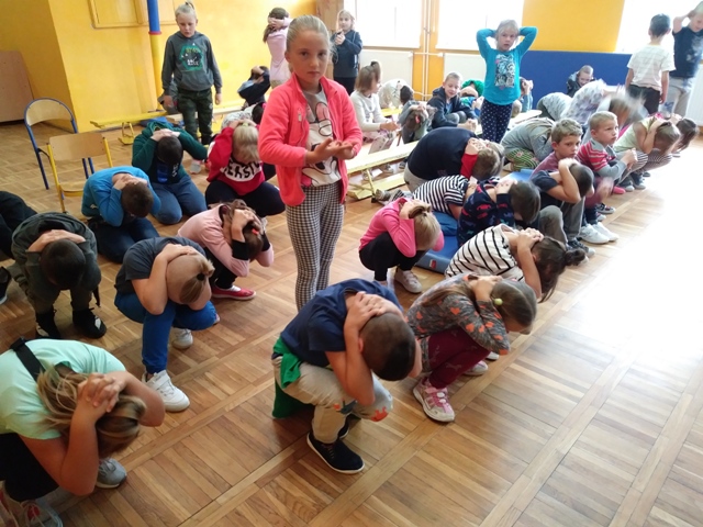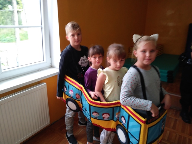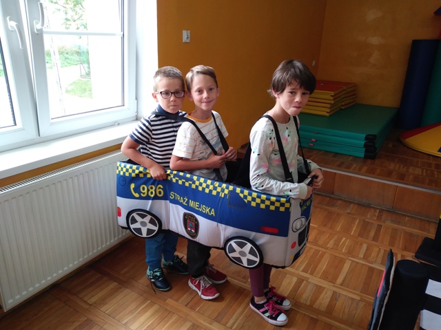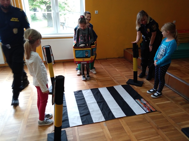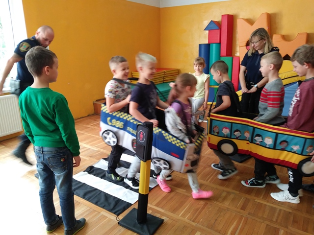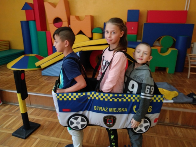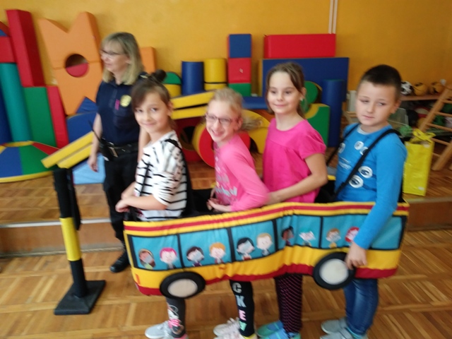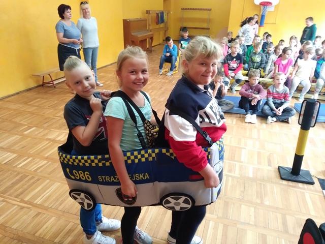 Podobnie jak uczniowie klas I, klasy II - III uczestniczyły w zajęciach przeprowadzonych przez funkcjonariuszy Straży Miejskiej. Uczniowie przypomnieli sobie zasady obowiązujące pieszych w ruchu drogowym /na chwilę stali się także autobusami/, ćwiczyli właściwe przejście przez jezdnię oraz pozycję "żółwia" - na wypadek spotkania np. z groźnym psem. Na pamiątkę otrzymali książeczki o ochronie zasobów wodnych i odblaski.dziękujemy strażnikom miejskim za poświęcony czas i przeprowadzone zajęcia.
