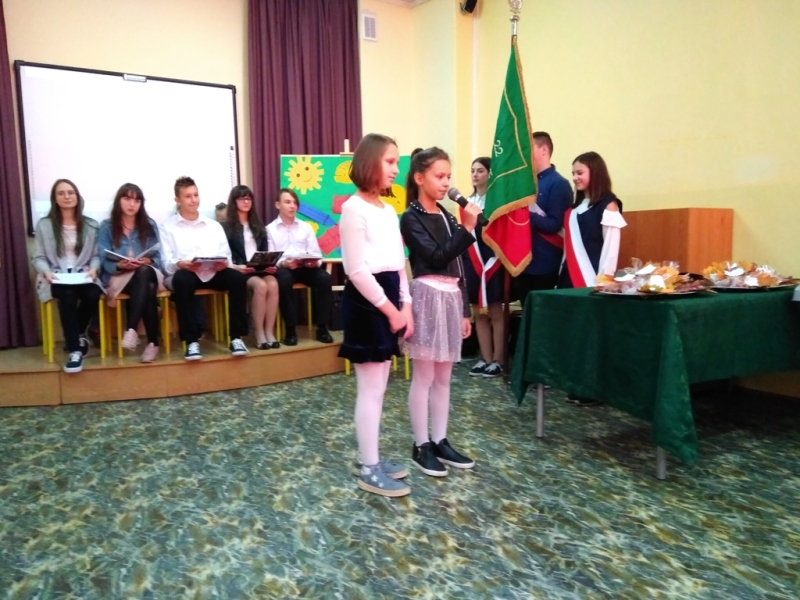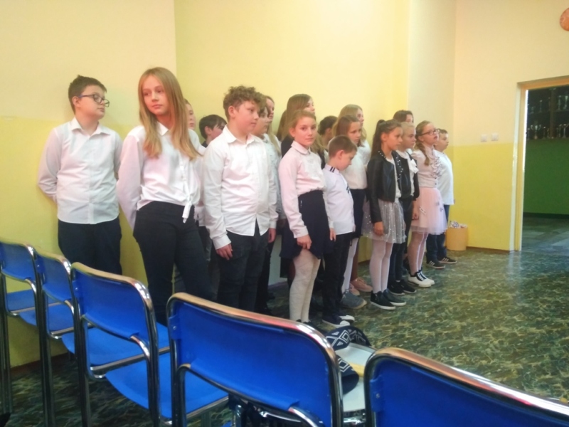 Słowami piosenek i wierszy podziękowali swym nauczycielom za trud edukacji i wychowania oraz cierpliwość. Nauczyciele i uczniowie wysłuchali program artystyczny przygotowany przez klasę VIII a .Wydarzeniu towarzyszył występ szkolnego chóru. P. Dyrektor podziękowała nauczycielom za zaangażowanie i trud włożony w proces edukacji .