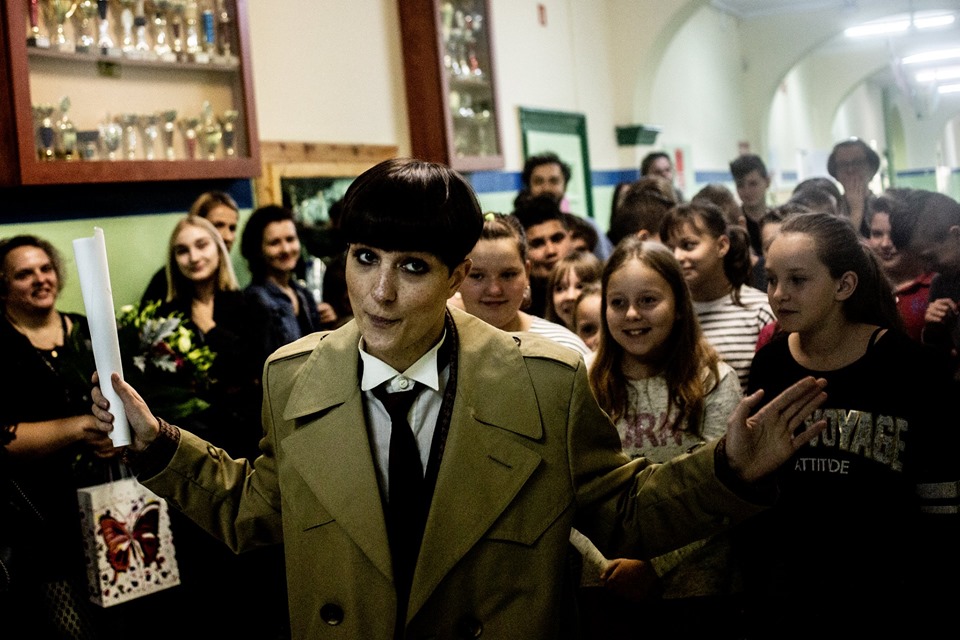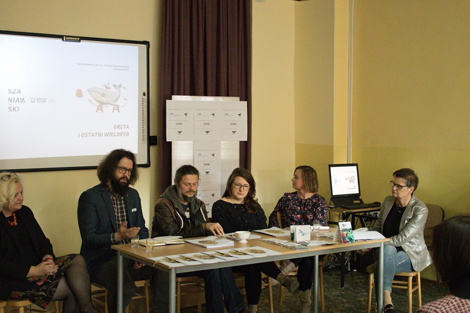 W dniach15,16 października w2019 r w naszej szkole gościli aktorzy z Teatru Dramatycznego im. J. Szaniawskiego w Wałbrzychu. Artyści przygotowali spektakl o tematyce ekologicznej pt „ Greta i ostatni wieloryb”. Przedstawienie odbywało się w różnych miejscach szkoły, między innymi w gabinecie Dyrektora, na strychu i Sali gimnastycznej. Wiele emocji wśród uczniów budziły dekoracje i rekwizyty wykorzystywane podczas spektaklu. Przedstawienie obejrzały klasy V i VI. Przedpremierowy występ był przeznaczony dla zaproszonych gości.