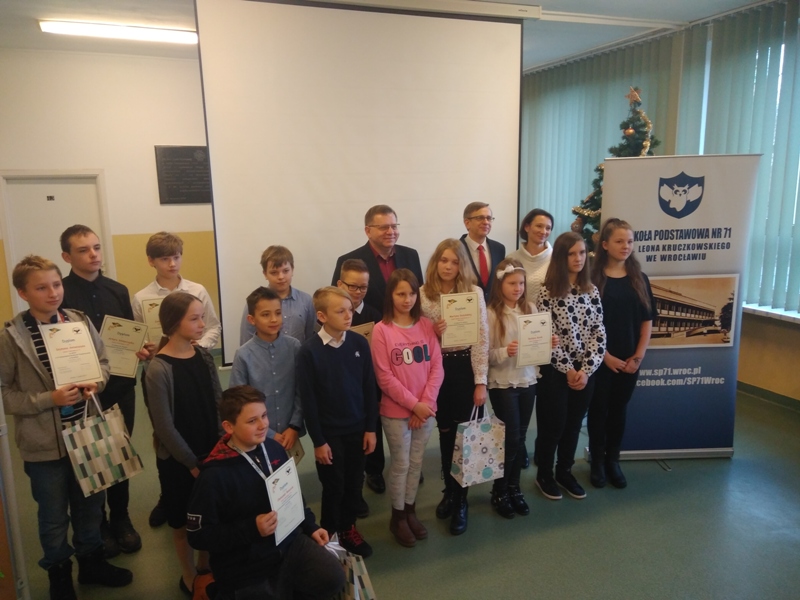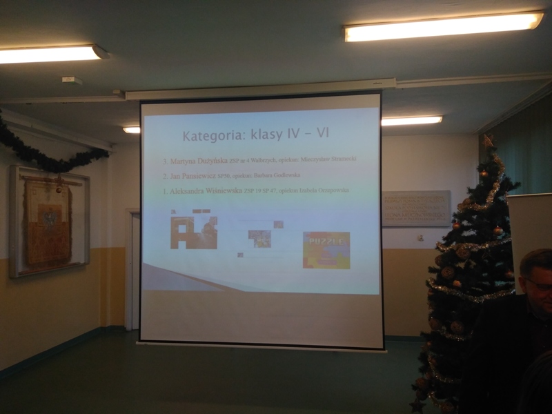 W Szkole Podstawowej nr 97 we Wrocławiu dnia 18.12.2119u odbyła się Gala Finałowa wojewódzkiego konkursu młodych programistów . Nasza uczennica Martyna Dużyńska z klasy VI zaprogramowała w Scratchu puzzle które zostały docenione przez komisję konkursowa