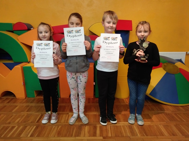 Przed feriami klasy młodsze uczestniczyły w apelu wychowawczym podsumowującym pierwszy semestr. Rozstrzygnięto konkursy na najdłuższy łańcuch, zbiórkę makulatury, baterii, nakrętek. Poznaliśmy najmilszych uczniów z poszczególnych klas. Tytuł SUPER KLASY w I semestrze zdobyła klasa II A. Gratulujemy nagrodzonym uczniom! Mały samorząd.