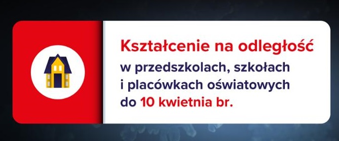 Zmieniliśmy przepisy, dzięki którym możliwe jest prowadzenie kształcenia na odległość w okresie czasowego ograniczenia funkcjonowania szkół i placówek oświatowych w związku z zapobieganiem, przeciwdziałaniem i zwalczaniem COVID- 19. Określiliśmy zasady prowadzenia nauczania na odległość i stworzyliśmy możliwość oceniania i klasyfikowania uczniów. Nowe przepisy będą obowiązywały od 25 marca 2020 r. do 10 kwietnia 2020 r.