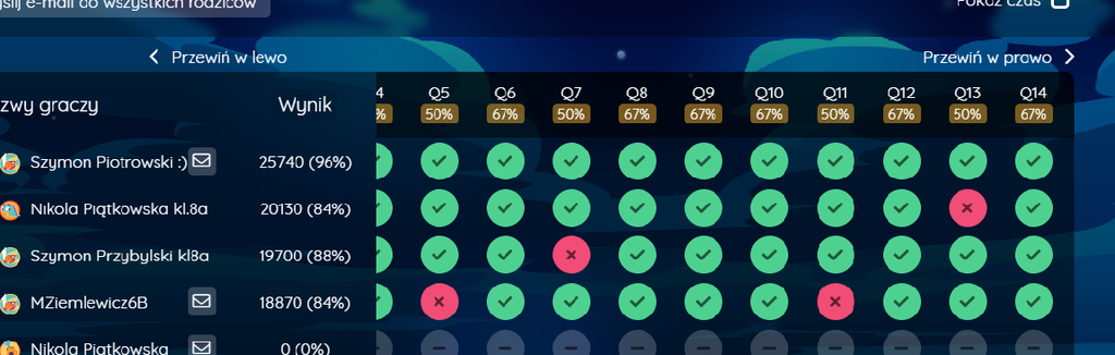 Wyniki szkolnego konkursu wiedzy o Netykiecie i Bezpieczeństwie w sieci online Quizziz