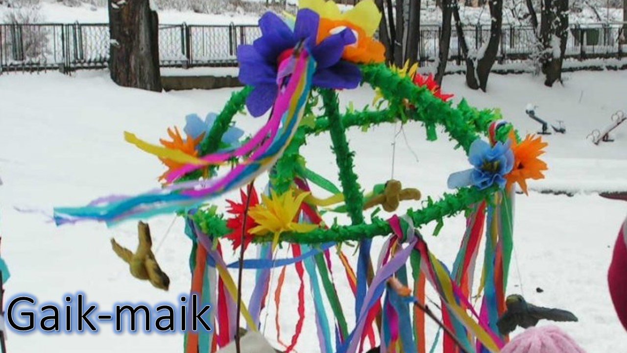 - wykonanie ozdoby wiosennej lub wielkanocnej (np.: gaika-maika/stroika wiosennego - kompozycji kwiatowej/ marzanny/palmy wielkanocnej/stroika wielkanocnego/baranka wielkanocnego/pisanki)