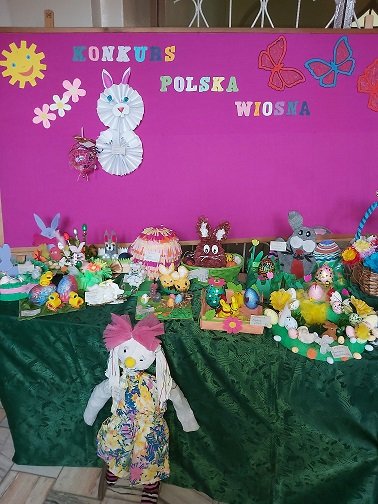 Konkurs Czytelniczo-Plastyczny „Polska Wiosna”, realizowany w ramach Narodowego Programu Rozwoju Czytelnictwa (projekt – „Polak to brzmi dumnie!), został rozstrzygnięty. Uczestnicy z przedszkola oraz klas I-VIII przygotowali prace związane z polskimi tradycjami wiosenno-wielkanocnymi: marzanny, gaiki-maiki, stroiki wiosenne (kompozycje kwiatowe), stroiki wielkanocne, baranki i pisanki oraz rysunki. Wszystkie prace konkursowe zostały zaprezentowane na parterze szkoły w formie wystawy.