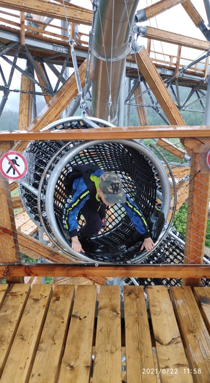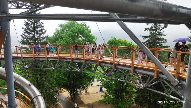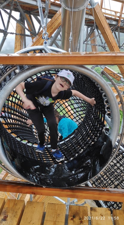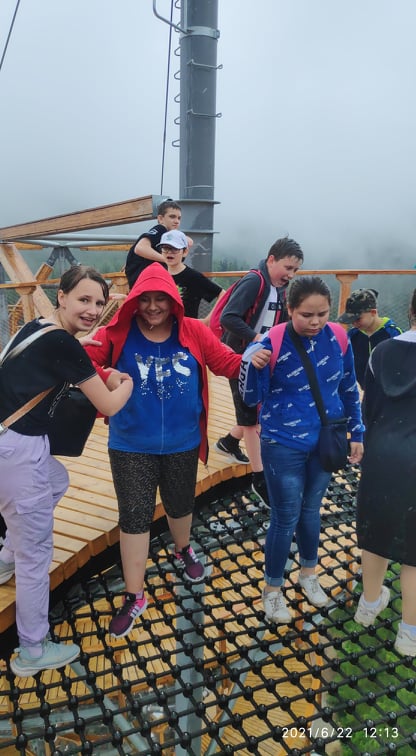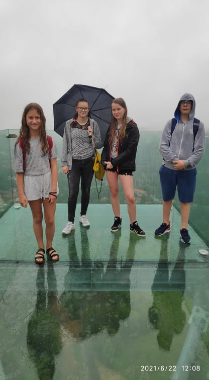 Dnia 22 czerwca 2021 roku uczniowie naszej szkoły uczestniczyli w wycieczce do Świeradowa Zdroju. Celem wyprawy była nowo wybudowana wieża widokowa Sky Walk. Niezwykły spacer w chmurach po wijącej się 850 metrowej kładce zachwycał swą konstrukcją i widokami. Na samej górze, na wysokości 62 metrów, odpoczęliśmy na siatce w kształcie kropli, a śmiałkowie wchodzili na szklaną platformę, by poczuć dreszcz emocji. Niestety ze względu na deszcz nie można było zjechać na dół 105 metrową zjeżdżalnią by wrócić w kilka sekund z chmur na ziemię. Cali i nieco zmoknięci wróciliśmy do naszych domów, a w sercach pozostały nie zapominanie wrażenia.