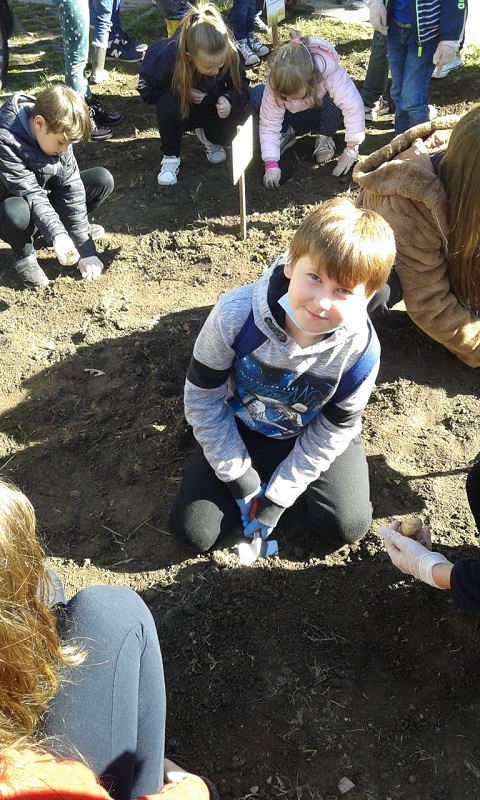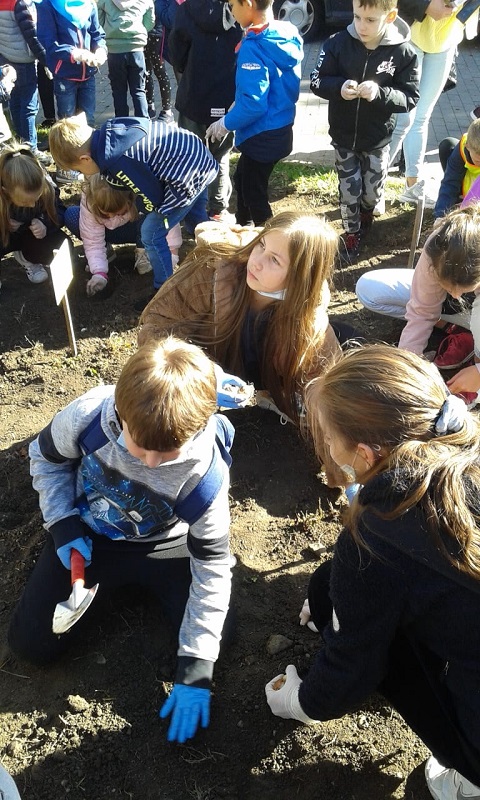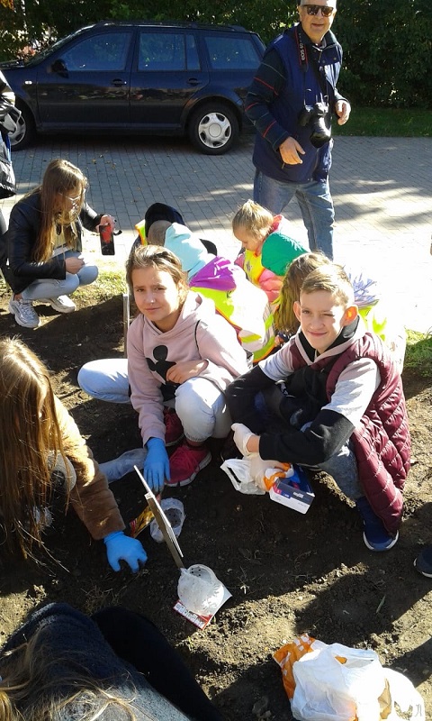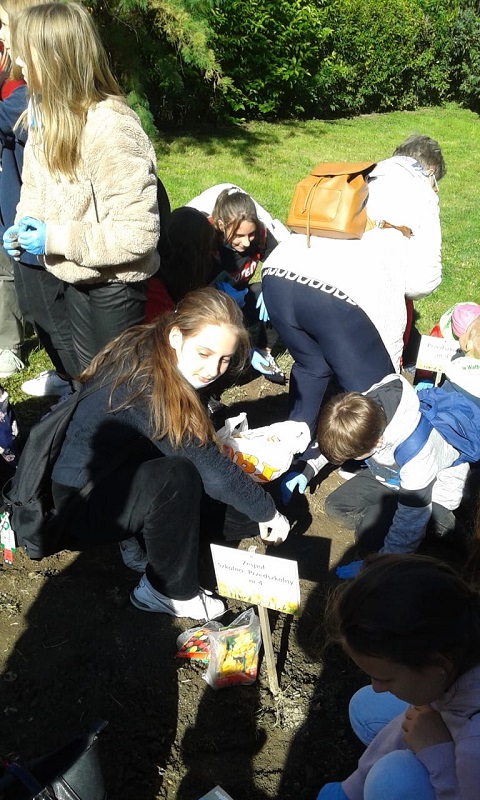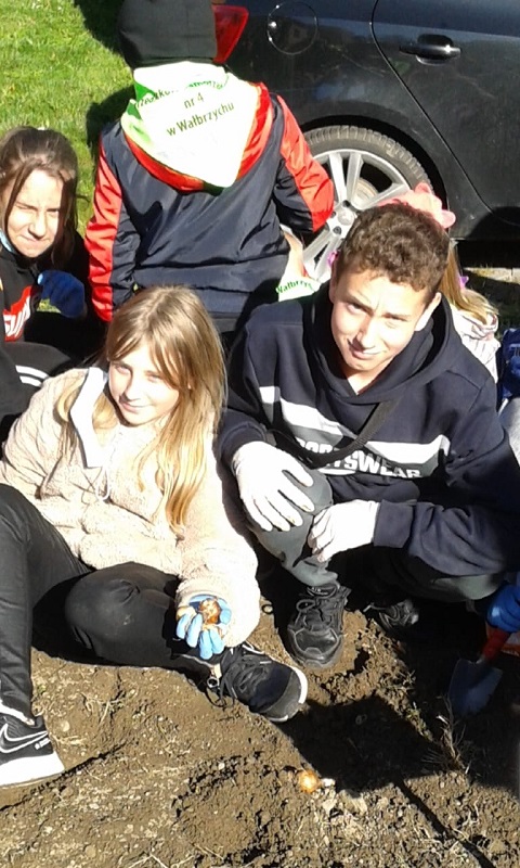 Dnia 01.10.2021r wolontariusze naszej szkoły, wraz z opiekunem panią Katarzyną Wojciechowską, uczestniczyli w kolejnej akcji sadzenia żonkili w wałbrzyskim hospicjum.