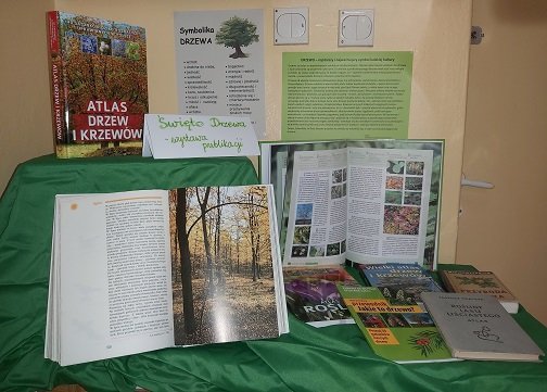 · W bibliotece szkolnej zorganizowana została wystawka publikacji o drzewach.
