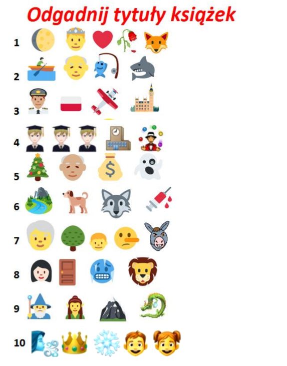 Odgadnij tytuły książek, które zaszyfrowano przy pomocy emotikonów.