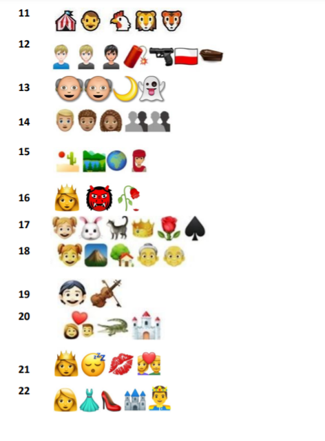Uwaga: Przyjrzyj się uważnie wszystkim symbolom, ponieważ każdy z nich ma znaczenie. Emotikony odpowiadają treści książki, a nie wyrazom, z których składa się jej tytuł.