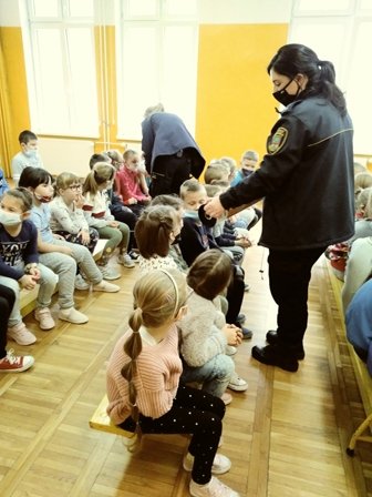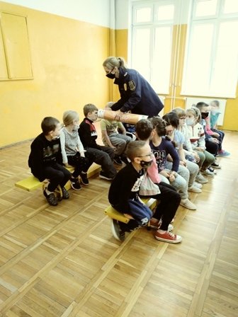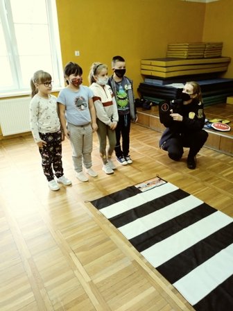 Uczniowie klas I - III uczestniczyli w spotkaniu z pracownikami Straży Miejskiej. Dotyczyło ono bezpieczeństwa w ruchu drogowym. Uczniowie przypomnieli sobie znaczenie podstawowych znaków drogowych, praktycznie poćwiczyli poprawne przejście przez jezdnię oraz mogli przez specjalną tubę zobaczyć, jak kierowca widzi osobę ze znaczkiem odblaskowym, a jak bez tego znaczka. Każdy uczestnik otrzymał taki znaczek, który na pewno przyda się podczas czasu jesiennych szarug i zimowych, krótkich dni.