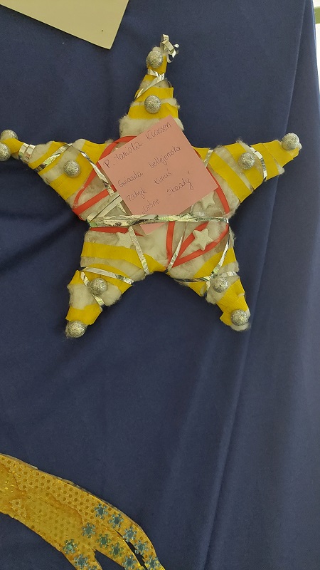 Z okazji zbliżających się Świąt Bożego Narodzenia został ogłoszony w nasze szkole konkurs pod haslem ,Gwiazda Betlejemska". Wszyscy, którzy wzięli udział w konkursie świetnie się spisali. Wykonane prace są licznie oglądane przez naszych uczniów i pracowników szkoly.