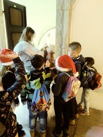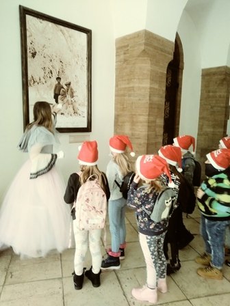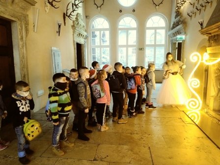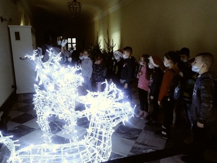 W ten przedświąteczny czas uczniowie klasy 1 a wybrali się do Zamku Książ celem szukania Mikołaja. Pomogła im w tym wróżka, która oprowadzała dzieci po różnych zakątkach zamku, opowiadała legendy i historie związane z tym miejscem i z księżną Daisy oraz zapoznała z baśniami o tematyce świątecznej. Przez cały czas dzieci próbowały spotkać się ze świętym, ale: a to Mikołaj pokazał się nam w małym otworze w ścianie, a to stał na balkonie, z którego spuszczał na linie worek z czapeczkami i cukierkami. Zawsze pomylił komin, do którego powinien wejść.Mówił, że to wina renifera Rudolfa. Dzieci zaglądały do kominków, których w zamku nie brakuje. Tam też go nie było. Na całe szczęście sprawy w swoje ręce wzięła wróżka i szczęśliwie doszło do bezpośredniego spotkania. Radości nie było końca.