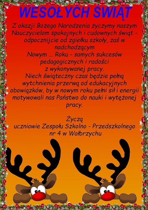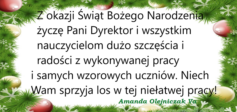 Odpocznijcie od zgiełku szkoły, zaś w nadchodzącym Nowym Roku – samych sukcesów pedagogicznych i radości z wykonywanej pracy