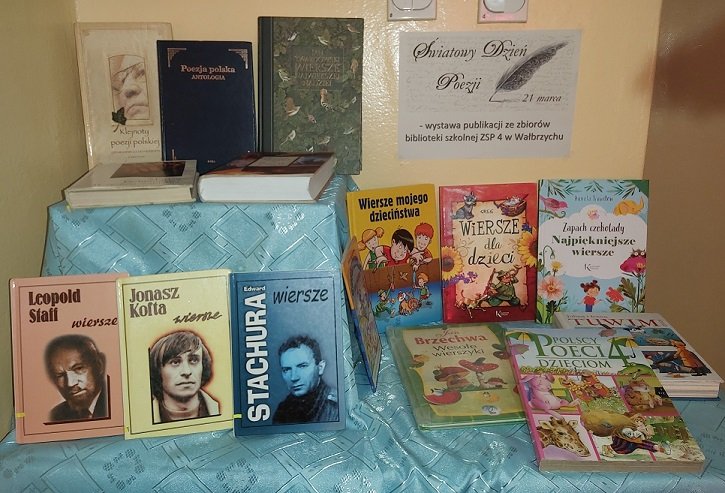 Z okazji Dnia Poezji biblioteka szkolna przygotowała wystawę publikacji dla miłośników czytania wierszy w każdym wieku. Zaczytajmy się razem w poezji…