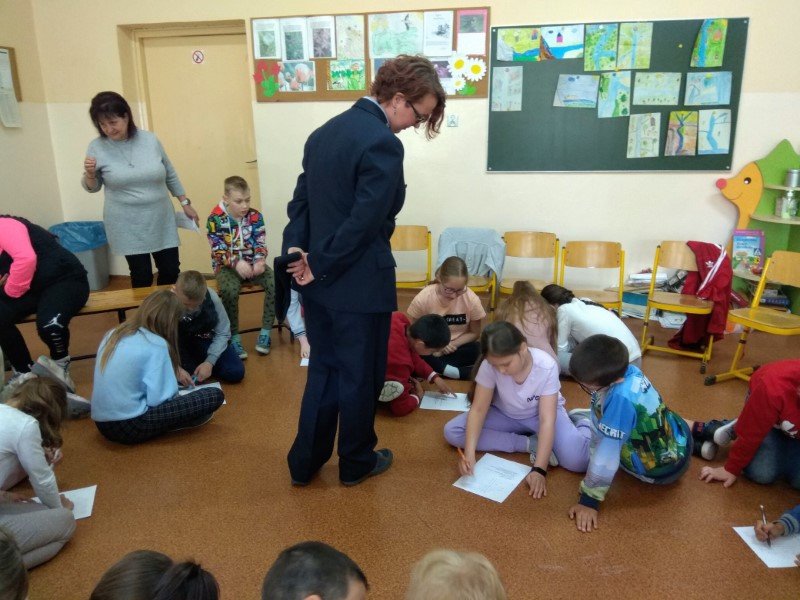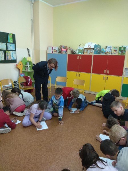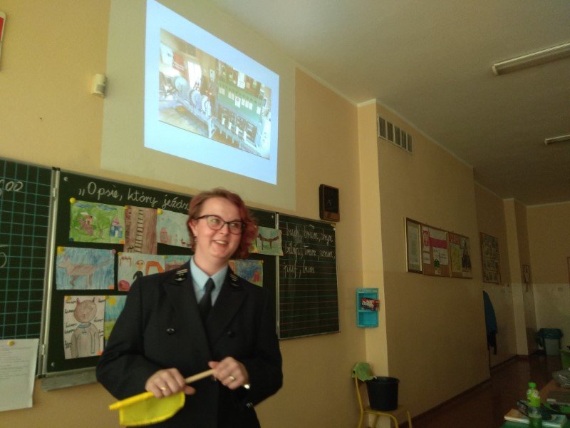 13 maja klasy trzecie realizowały kolejne zajęcia z cyklu" Ciekawi ludzie, ciekawy zawód". Po przeczytaniu lektury" O psie, który jeździł koleją" postanowiliśmy bliżej poznać zawody ludzi związanych z transportem kolejowym. Pani Anna Tucznio ( prywatnie mama Natalii z 3 a) przygotowała z wychowawcami zajęcia w ramach realizacji Projektu: Kampania społeczna" Bezpieczny przejazd" Uczniowie poznali zawód dróżnika przejazdowego, zawiadowcy stacji, konduktora, maszynisty oraz inne zawody związane z koleją. Spotkanie było bardzo ciekawe! Uczniowie z zainteresowaniem przeprowadzili wywiad z gościem , rozwiązali rebusy i krzyżówkę o tematyce kolejowej. Wykonali ciekawe doświadczenie ukazujące dlaczego na peronie nie wolno przekraczać żółtej linii bezpieczeństwa. Pani wyglądała świetnie! A nakrycie głowy zrobiło furorę!