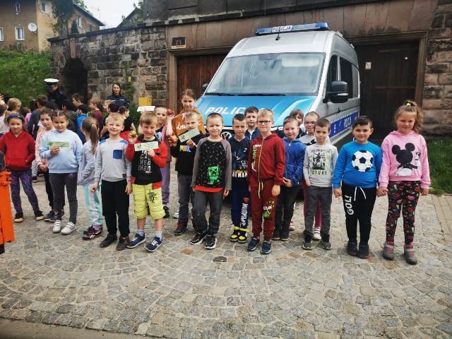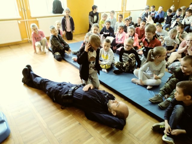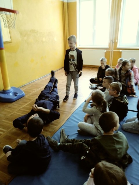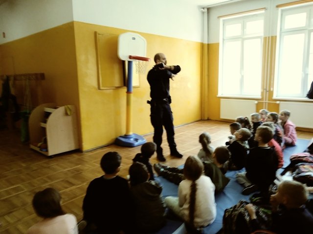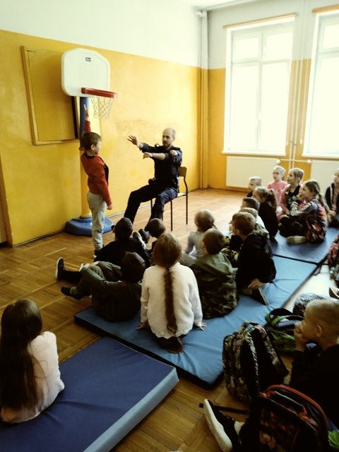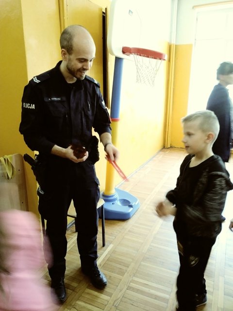 Klasy I - III spotkały się z funkcjonariuszem policji, który w sposób obrazowy przypomniał dzieciom wiadomości dotyczące - bezpieczeństwa na drodze, numerów alarmowych, wzywania pomocy, kontaktów z obcymi osobami oraz trudnego tematu - porwań dzieci. Każdy uczeń otrzymał odblask, których nigdy dość.