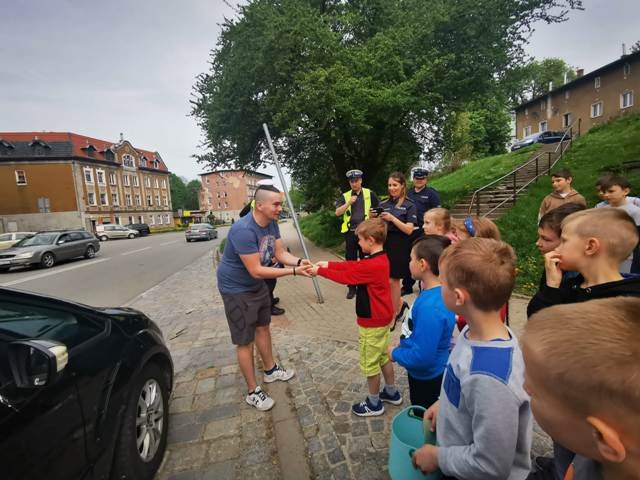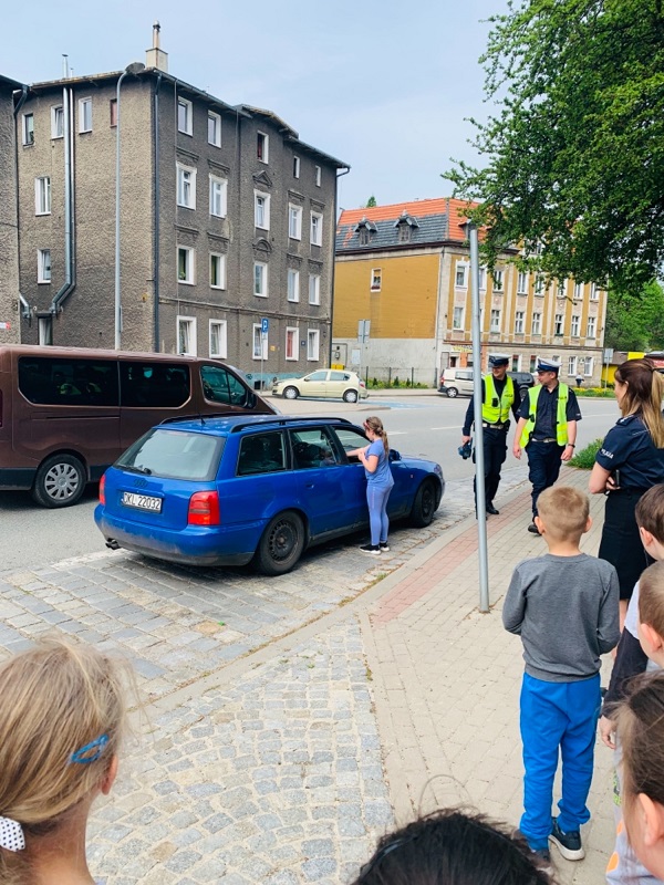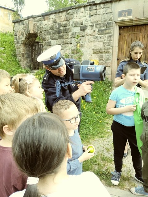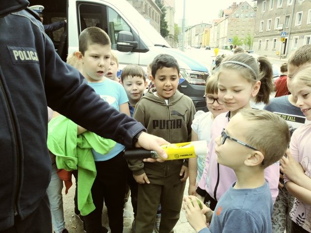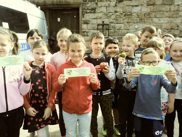 Dzieci uczestniczyły także w akcji "Jabłko, czy cytryna", której przeprowadzenie umożliwili nam funkcjonariusze policji drogowej. Oprócz akcji zatrzymywania kierowców, uczniowie mogli poznać także istotę pracy funkcjonariusza "drogówki" oraz sprawdzić zastosowanie alkomatu i radaru pomiaru prędkości. Obok jabłek niestety rozdaliśmy również cytryny.