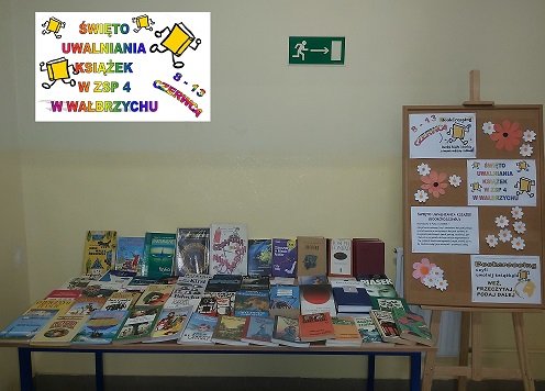 Zespół Szkolno-Przedszkolny nr 4 w Wałbrzychu włącza się w organizowaną na całym świecie od 2001 roku akcję BOOKCROSSINGU. W akcji tej chodzi przede wszystkim o promowanie czytelnictwa, o przekonanie innych, że dzielenie się jest lepsze od posiadania, o znalezienie przyjaciół i znajomych myślących podobnie jak my, i wreszcie ... o dobrą zabawę.