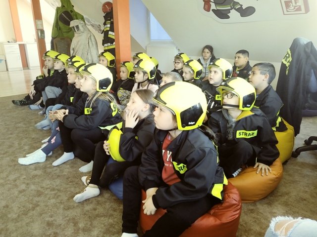 W ramach realizacji projektu unijnego z zakresu bezpieczeństwa, uczniowie klasy 2 a gościli w jednostce Straży Pożarnej przy ul. Przemysłowej. Dzieci dowiedziały się, na czym polega praca strażaka, mieli okazję zobaczyć strażacką siłownię, ale przede wszystkim wzbogaciły swoje wiadomości i umiejętności dotyczące takiego zachowania, żeby nie doszło do pożaru. Zobaczyły spalony pokój oraz poczuły dreszczyk emocji podczas nagłej ewakuacji spowodowanej pożarem i włączeniem się czujnika dymu. Po tych wrażeniach uczniowie mogli się wyciszyć oglądając kamieniczki wałbrzyskiego Rynku.
