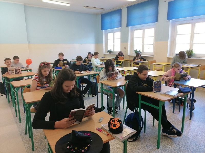 26.10. 2022 roku uczniowie naszej szkoły wzięli udział w biciu rekordu w czytaniu na przerwie. Wydarzenie to odbywa się w ramach Międzynarodowego Miesiąca Bibliotek Szkolnych oraz kampanii społecznej „Cała Polska czyta dzieciom”. Tegoroczna akcja jest trzecią edycją o zasięgu międzynarodowym. Celem tego przedsięwzięcia jest promocja czytelnictwa wśród dzieci i młodzieży, zachęcanie do sięgania po książkę w każdej sytuacji i w każdym miejscu.
