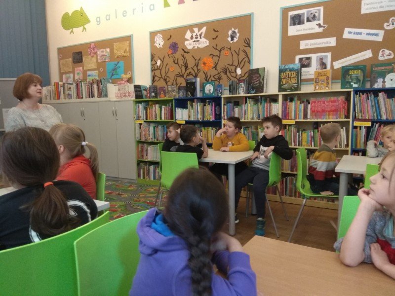 W dniu 26.10 22 r. klasa 1 b odbyła wycieczkę do Biblioteki pod Atlantami w ramach realizacji swojego planu klasowego - " Uczeń w szkole". Warsztaty biblioteczne odbyły się w dziale dla dzieci i dotyczyły ważnych zadań ucznia jako kolegi i przyjaciela. W tym dniu uczestniczyliśmy w akcji " Przerwa na czytanie" ogłoszonej przez panię Magdalenę Banasik. Uczniowie wysłuchali opowiadania o zdarzeniu w świetlicy i wzajemnym wspieraniu się w trudnych sytuacjach szkolnych. Dzieci z radością wykonały pracę plastyczną oraz obejrzały krótki film dotyczący radości z czytania książek. Jako uczniowie klasy 1 zachowali się wzorowo.