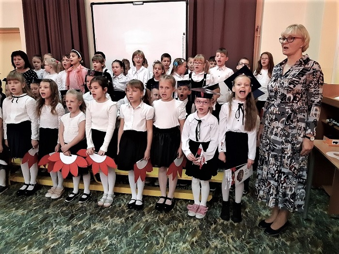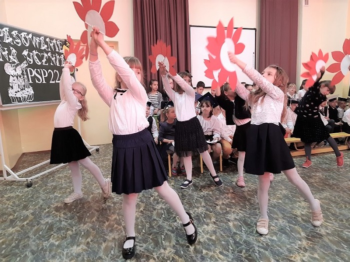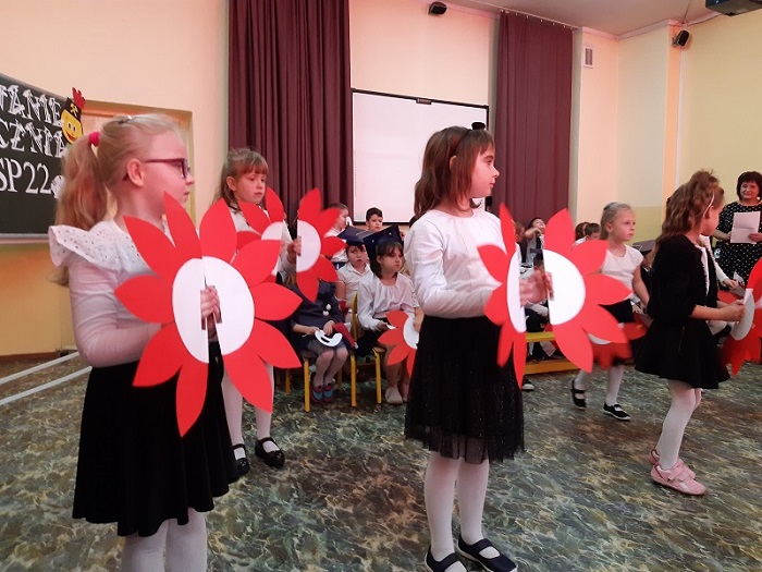O tym recytowali i śpiewali uczniowie. Dziewczynki zaprezentowały piękny taniec z biało-czerwonymi kwiatami.