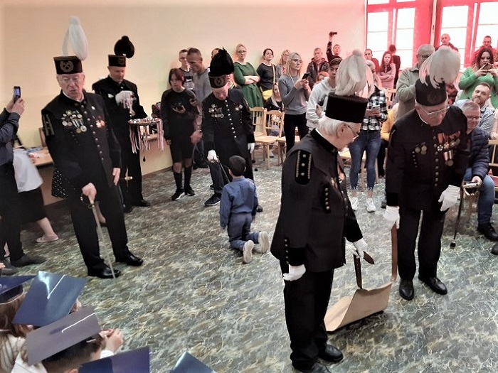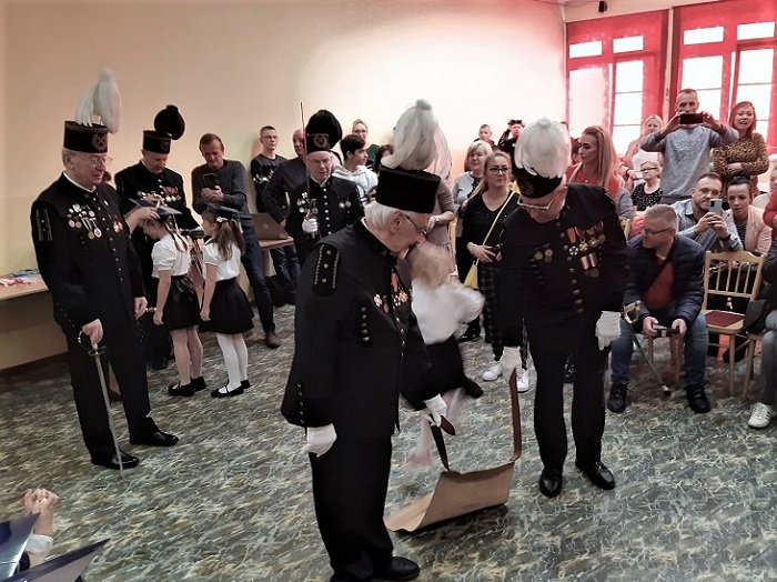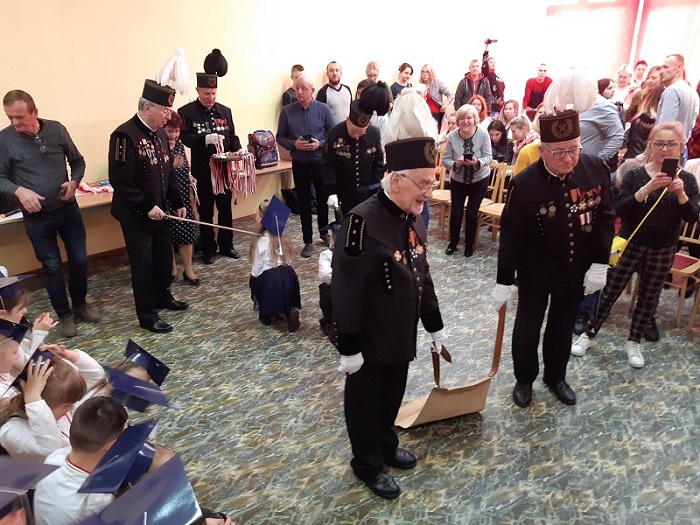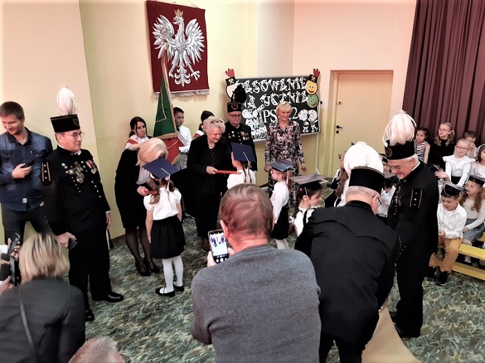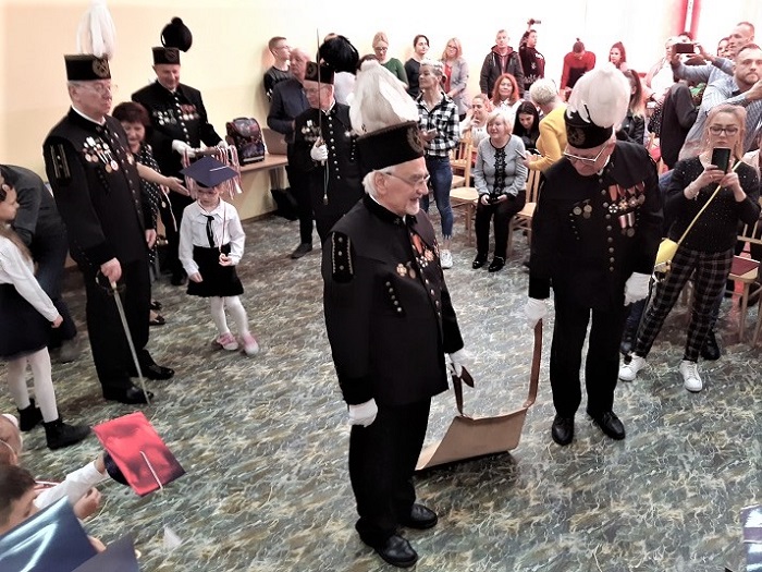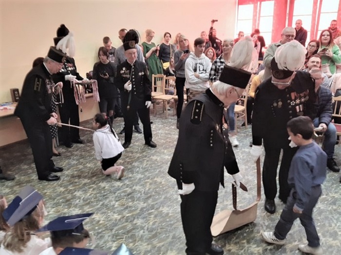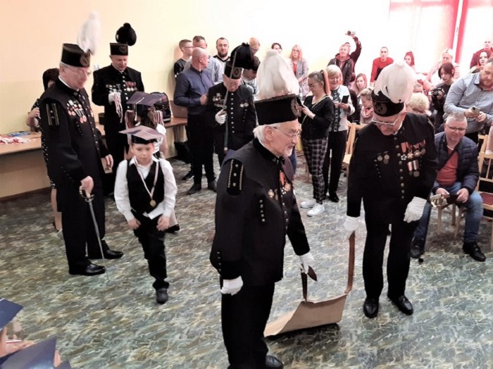 Największym przeżyciem dla dzieci był moment pasowania magicznym ołówkiem na ucznia oraz po skoku przez skórę i szablą górniczą. na gwarka.