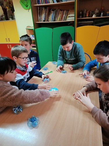 Dwudziestego grudnia w świetlicy szkolnej odbyły się warsztaty czytelniczo - plastyczne "Zimowe gwiazdki". W ramach zajęć uczniowie klas II i III przygotowali ozdoby z plastikowych butelek.