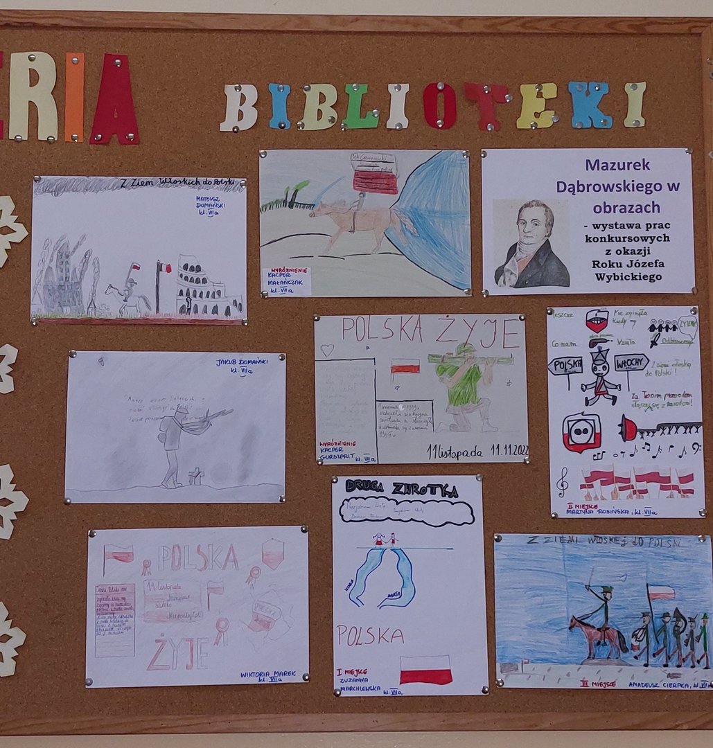 Laureaci konkursu czytelniczo-plastycznego „Mazurek Dąbrowskiego w obrazach” zorganizowanego