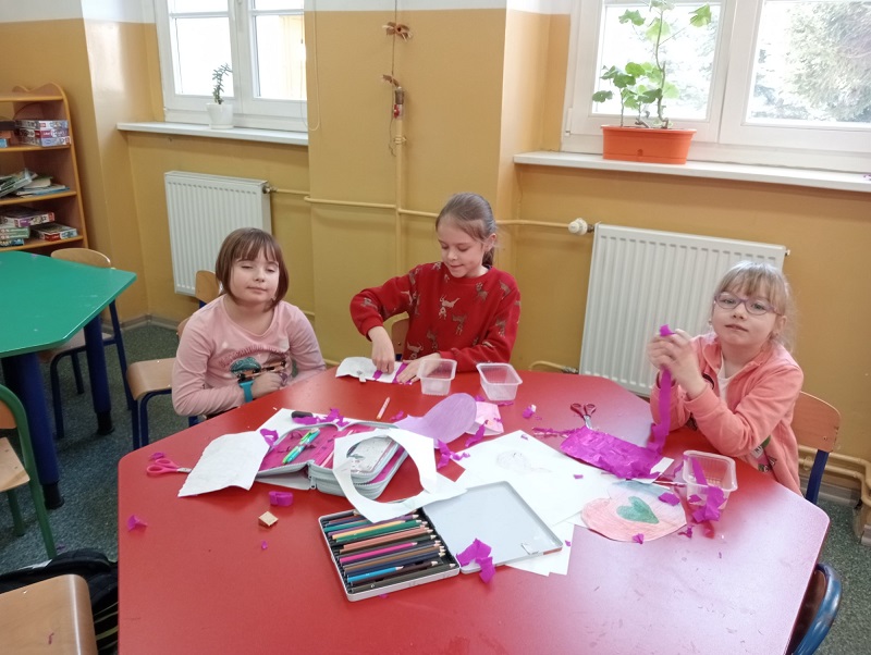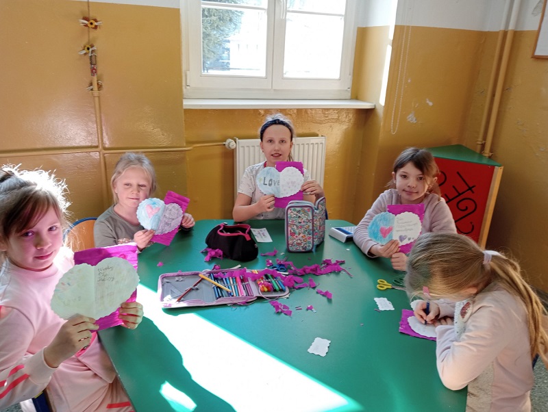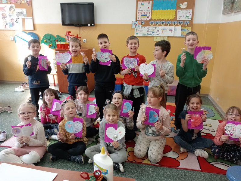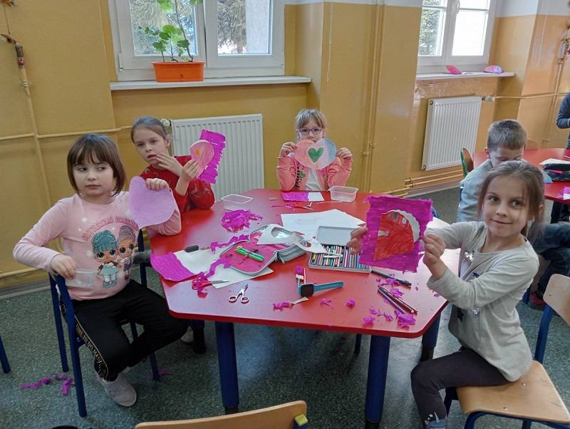 Klasa 1a i 1 b pod kierunkiem Pani Joanny Kowalskiej wykonała serca walentynkowe dla swoich bliskich osób.